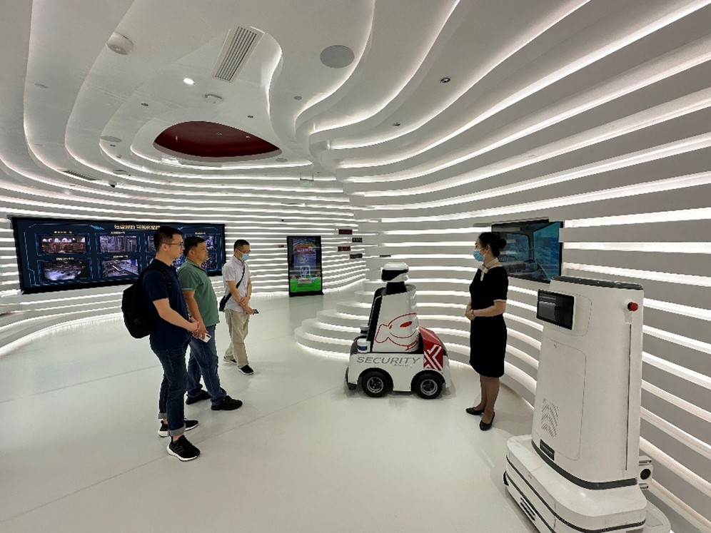 在工作人员的带领下,王宇一行参观了京东西南总部德州扑克在线练习展厅,了解了京东集团发展历程及最新技术应用成果。