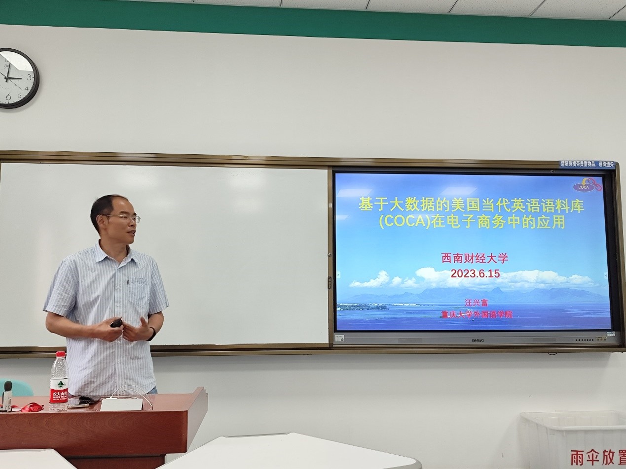 硕士生导师汪兴富副教授,为我校师生带来题为基于大数据的美国当代英语语料库在电子商务中的应用专题讲座。汪教授主要研究领域为认知语言学及语料库语言学方向,是国内学术界介绍COCA语料库的第一人。本次讲座由帅青红教授主持,电子商务本科生、管理科学与工程硕士研究生以及工商管理博士生参加此次讲座。