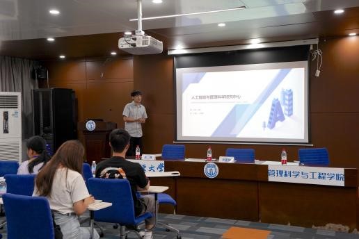 接下来,王俊副教授也为营员们作了题为“通用人工智能与金融市场风险研究”的学术交流讲座。王俊教授贴合学校财经特色,发挥管科学科优势,在证券市场的金融量化、风险管理等领域已经有了坚实的研究基础,他向营员们分享了目前正从事的数据融合、可持续金融研究等前沿领域发展,号召同学们积极投身管理科学交叉融合的发展前沿。