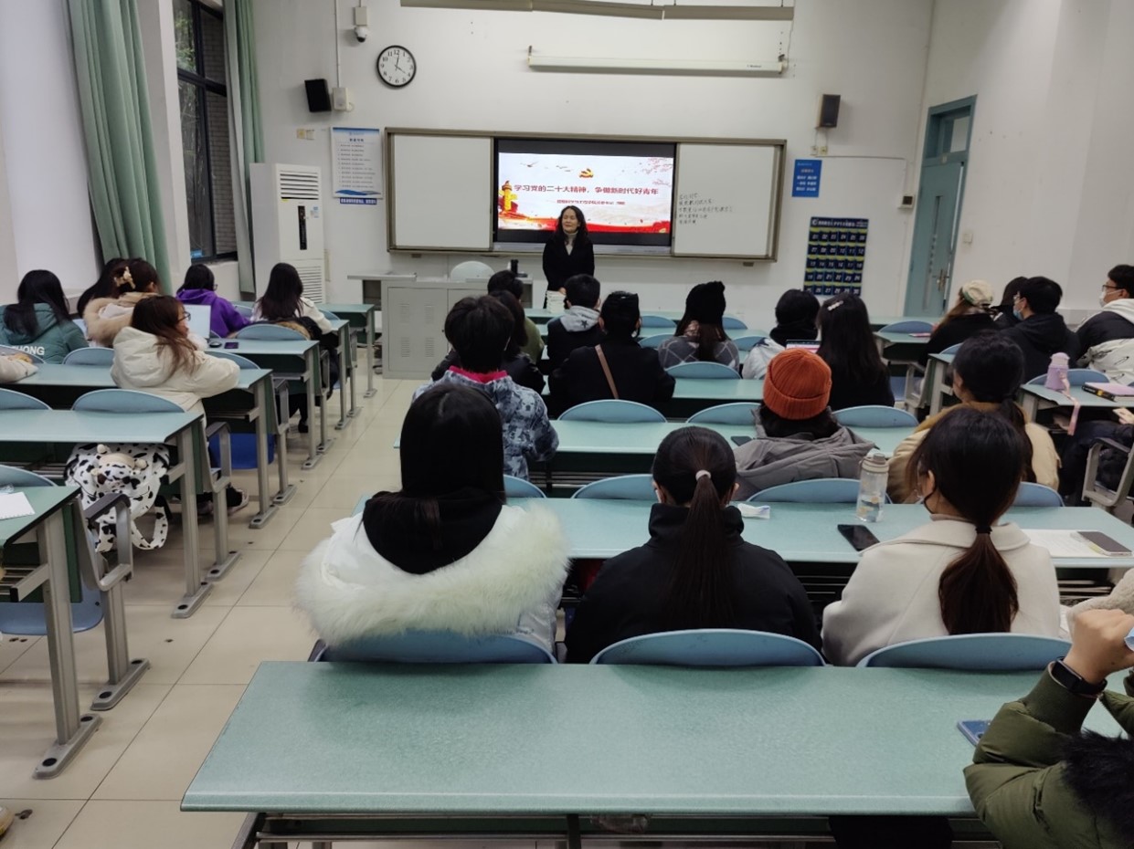 学生代表宣讲学习贯彻党的二十大精神的重大意义,带领大家深刻领会、准确把握党的二十大精神的丰富内涵,重点阐述二十大报告中关于青年和青年工作的内容,鼓励管科学子、特别是学生党员和学生干部冲在前、勇担当、做表率,牢记总书记的殷殷嘱托,以理想者、担当者、吃苦者、奋斗者的姿态,奋进新征程,诠释新青春,号召广大青年学生争做有理想、敢担当、能吃苦、肯奋斗的新时代好青年,用青春的能动力和创造力激荡起民族复兴的澎湃春潮。