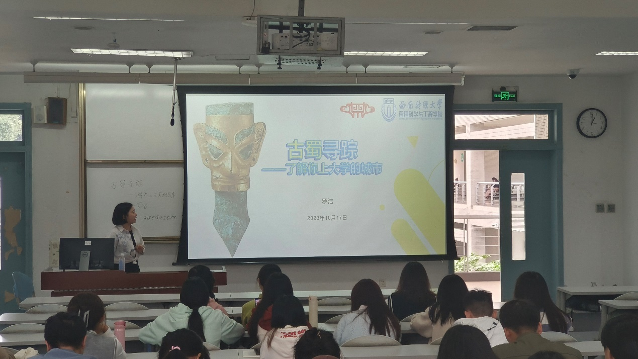 在经世楼F201举办“古蜀寻踪——了解你上大学的城市”文化素质讲座,主讲人为中国博物馆协会会员、四川博物院志愿者委员会委员罗洁,辅导员徐淼主持讲座,来自管理科学与工程德扑在线