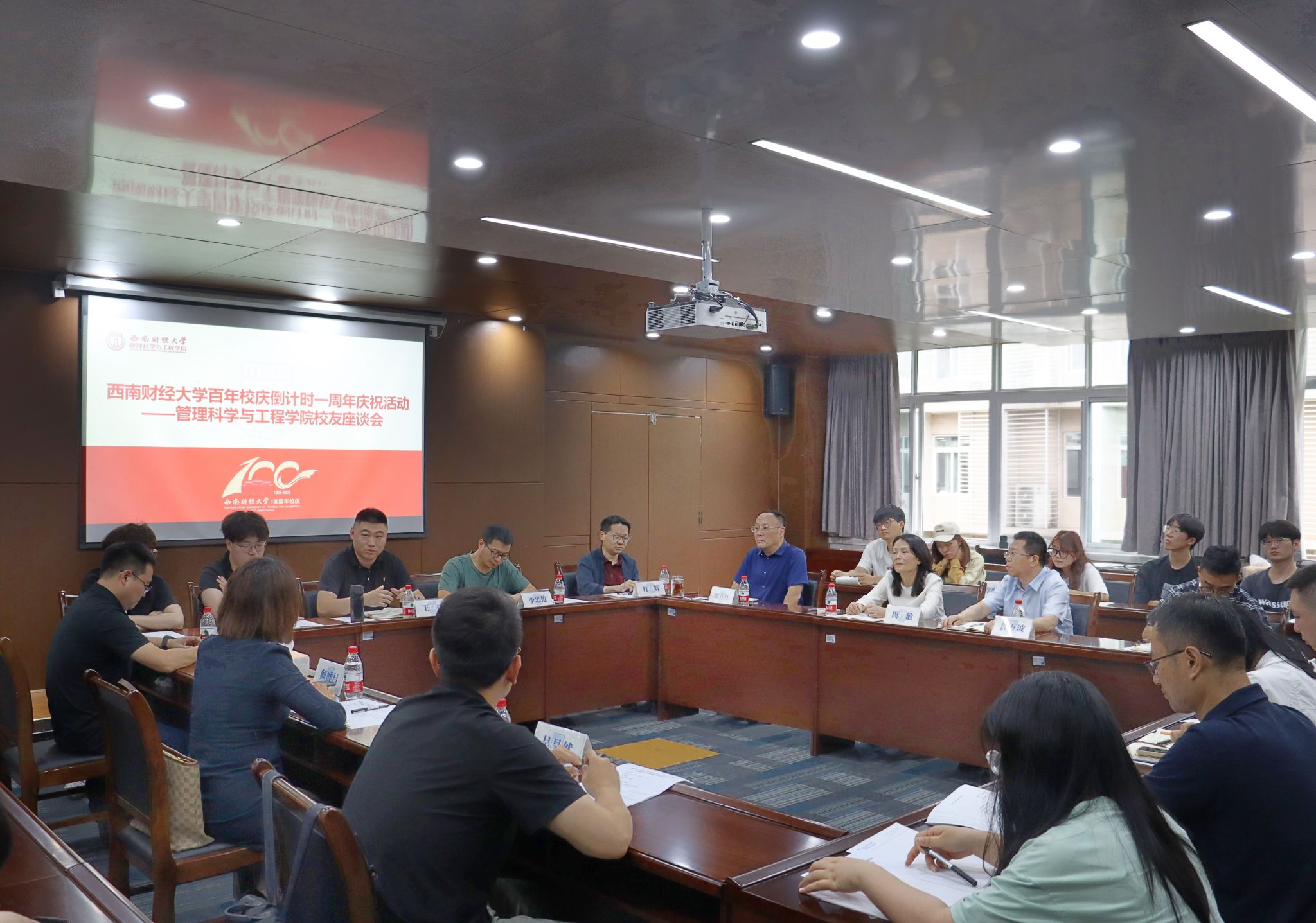 在通博楼D301会议室召开校友座谈会,校友代表师群昌、施敏、吴昊然重返校园,为母校送上祝福,德扑在线