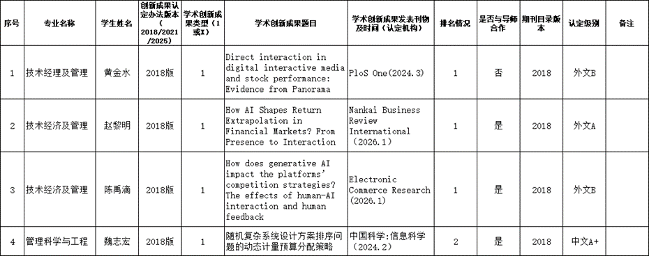 根据《西南财经大学博士生申请学位学术创新成果认定办法》和德州扑克在线练习 相应专业的博士生培养方案要求及科研成果发表的相关规定,德扑在线 对相关博士生的学术创新成果及科研情况进行了审核,现将结果予以公示。公示期15日,即自2026年4月14日至4月28日,在此期间若有异议,请及时反馈德扑在线 。